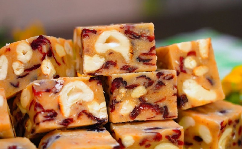 После этого к смеси добавляется белый шоколад, который следует тщательно перемешивать до полного растворения. Как только масса приобретет легкий карамельный оттенок, пришло время добавить орехи и сухофрукты. Кешью с его замечательной текстурой и сливочным вкусом идеально сочетается с кислинкой клюквы. Не забудьте немного обжарить орехи на сухой сковороде для дополнительного аромата.