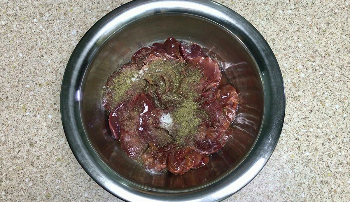 - Печень хорошо промывают, очищают от пленок и нарезают.
