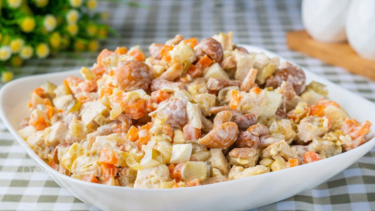- Маринованные грибы (опята или шампиньоны) – 350 г