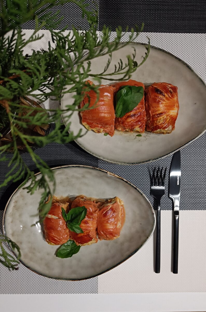 Голубцы, приготовленные по новому рецепту, получились сочными и ароматными. Пекинская капуста, обданная кипятком, сохранила свой замечательный хруст даже после запекания. Родные всегда радовались этому блюду на столе, хотя один из близких, похоже, не готов признать их в своем меню.