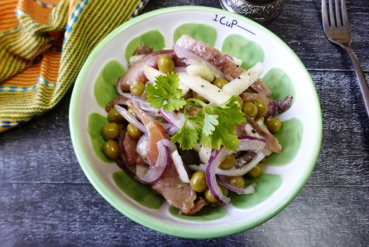 Любители копченой рыбы оценят этот быстрый и вкусный салат. В его рецепте совмещены простые ингредиенты, которые великолепно подчеркивают вкус как сельди, так и скумбрии. Это блюдо станет отличным дополнением любого праздничного стола и прекрасно подходит для закуски.
