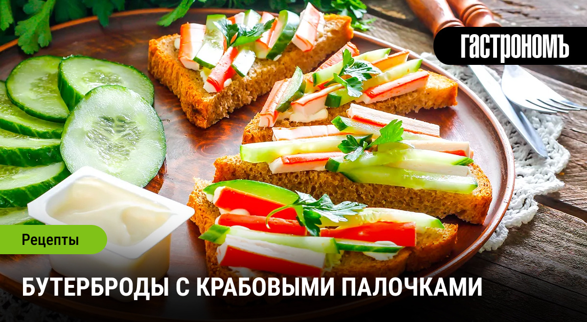- Бутерброды с свежим огурцом и крабовыми палочками — легкий и освежающий вариант.