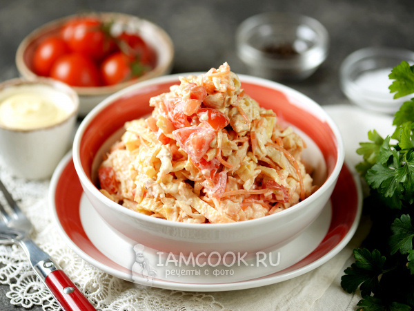 Салат с блинами и копченой курицей