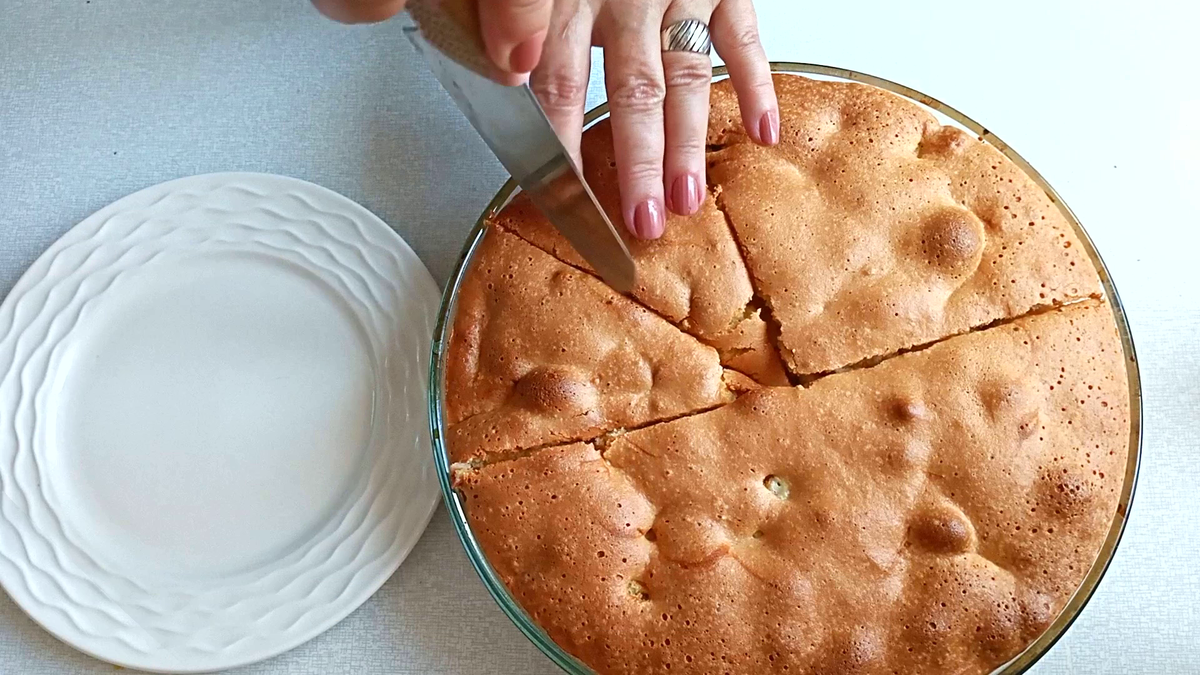 Когда пирог готов, дайте ему немного остыть и нарежьте на порции. Наслаждайтесь нежным вкусом, который создаёт сочетание яблок и бисквита!