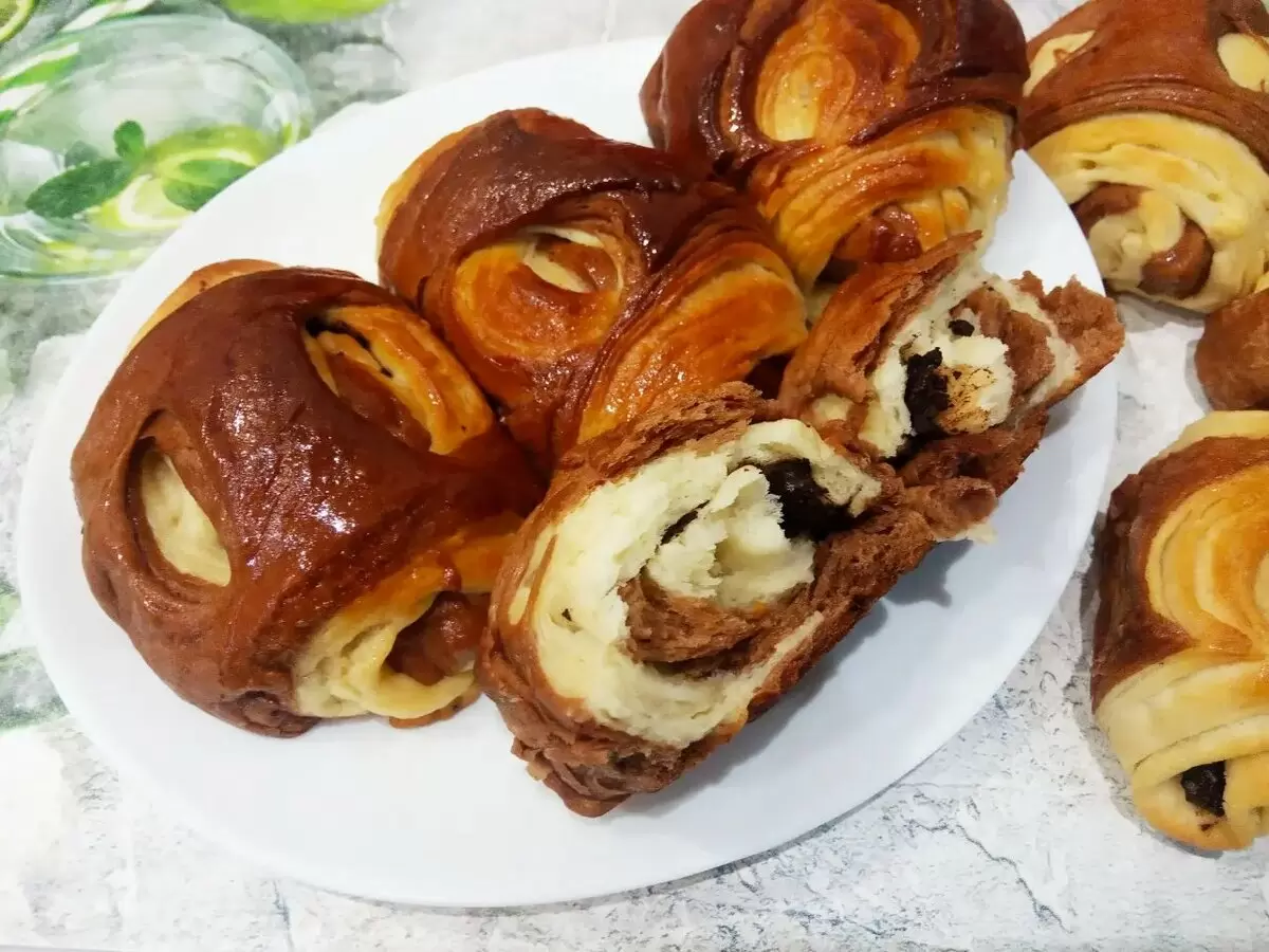Эти нежные и воздушные булочки из слоеного дрожжевого теста с шоколадной и джемовой начинкой – отличный способ порадовать себя и близких. Каждое обертывание теста создает слои, которые во время выпекания превращаются в аппетитную корочку с восхитительным ароматом. Откройте для себя секреты их приготовления!