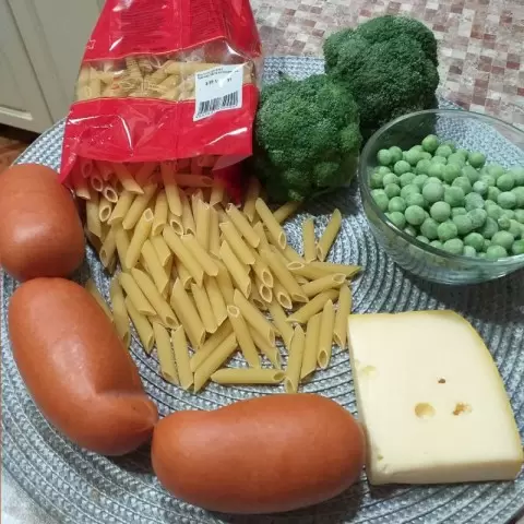 Приготовление начинается с кипячения воды в двух кастрюлях. В одной - макароны, доводя их до состояния «аль-денте», а в другой - брокколи и горошек. Овощи не нужно размораживать: достаточно погрузить их в кипящую воду на 7-8 минут.