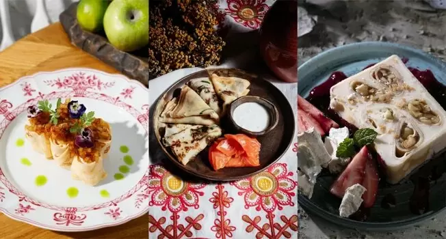 - Блины с форшмаком: Ресторан "Сибирьсибирь" предложил уникальную интерпретацию, где форшмак дополняется запечёнными яблоками, придавая блюду необычный вкус.