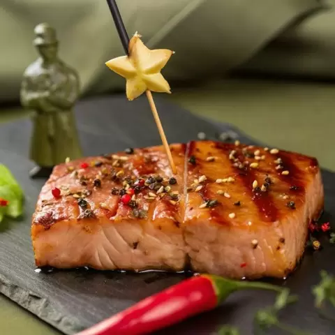 - Стейк из тунца с терияки: Красивый и ароматный, этот стейк идеально сочетается с кунжутным маслом и слёзками чили. Просто замаринуйте, обжарьте до румяной корочки и подайте с характерным криком: «Моя версия»!