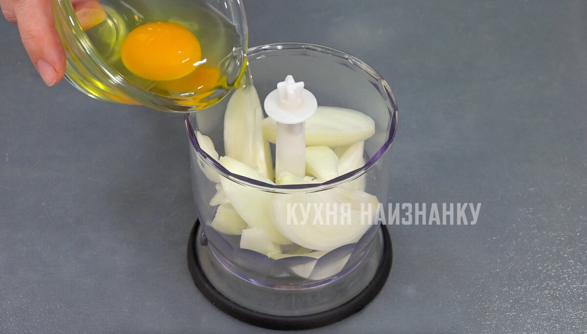 Приготовление кляра с луком начинается с чаша блендера, куда помещается одна большая луковица и яйцо. Полученную массу следует тщательно измельчить до состояния кашицы. Для тех, кто предпочитает ручной труд, лук можно натереть на мелкой терке и смешать с яйцом.