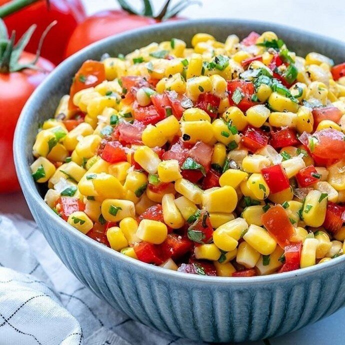 Летнее меню, наполненное яркими овощами и легкими закусками, не обходится без освежающего салата из кукурузы, помидоров и красного перца. Это блюдо идеально подходит для летнего обеда или ужина, придавая энергии и отличное настроение.