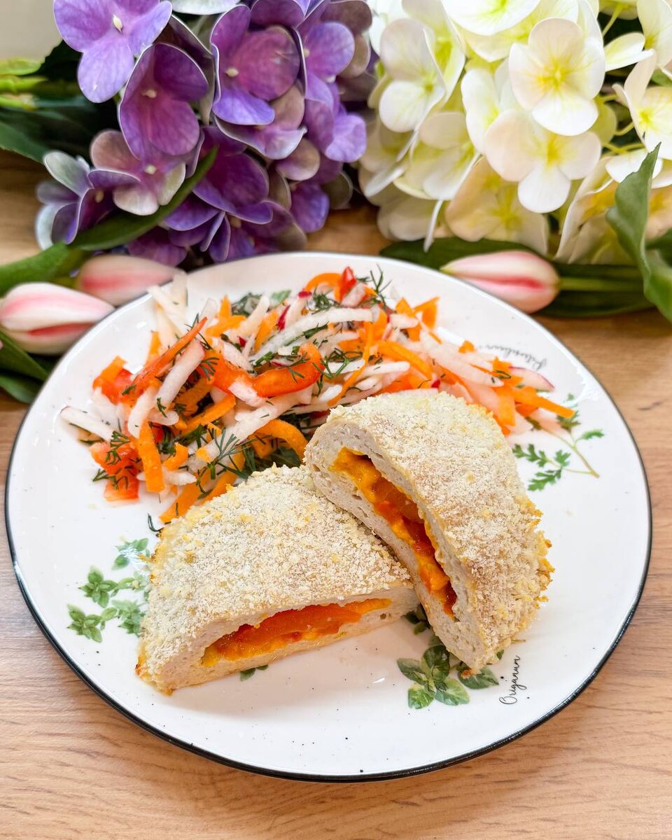 7. Лучше всего подавать кармашки с салатом из свежих овощей — это придаст блюду дополнительную свежесть.