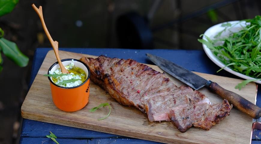 Летний сезон — идеальное время для барбекю и аппетитных стейков! Не стоит отказываться от мяса, особенно если оно так вкусно на гриле. А яркий песто из руколы добавит блюду уникальный вкус.