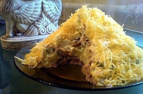Этот салат — настоящая находка для любителей удивительных сочетаний. Нежный и изысканный вкус «Египетской пирамиды» гарантированно покорит сердца даже самых взыскательных гурманов.