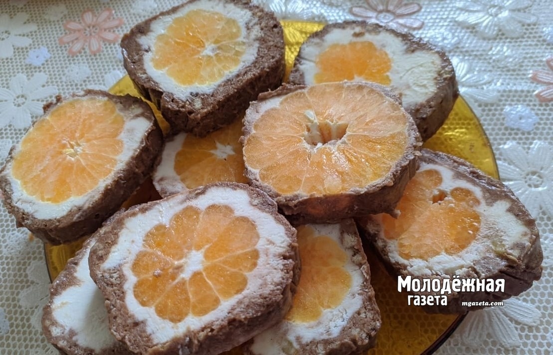 Мандариново-творожный рулет без выпечки