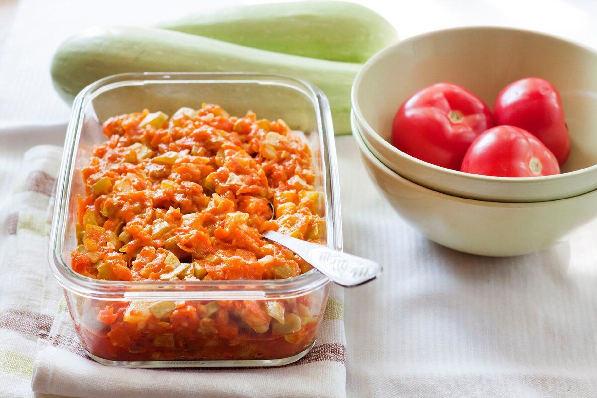 - Лук нарезать полукольцами, морковь натереть, перец и помидоры нарезать кубиками, а кабачки – небольшими кусочками.