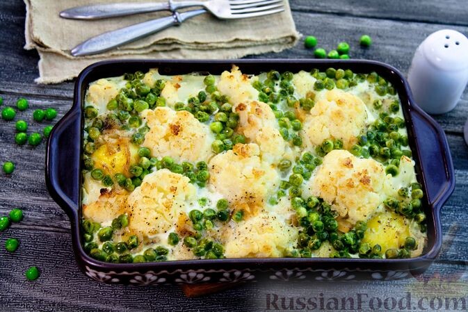 Еще одним прекрасным вариантом станет картофельная запеканка с цветной капустой и горошком. Это блюдо, несмотря на свою простоту, оказывается очень сытным и самодостаточным, без лишних изысков. Всего несколько местных ингредиентов могут превратить обыденный прием пищи в настоящий кулинарный шедевр.