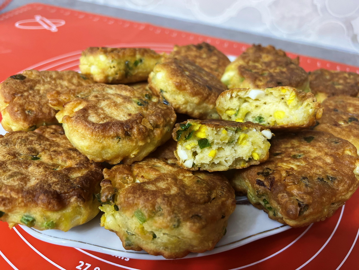 Приготовление теста занимает всего несколько минут: пока варятся яйца, тесто будет готово. Просто смешайте все ингредиенты, добавьте нарезанные яйца и зелёный лук, и всё — можно приступать к формированию пирожков.