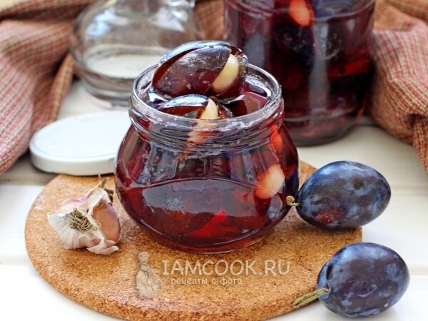 - Сливы с чесноком: Для этого рецепта вам понадобятся 1 кг слив, 2 головки чеснока и простой маринад на основе воды, уксуса, сахара и специй. Такой вариант прекрасно сочетается с мясными блюдами.