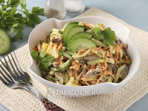 После тщательной сборки иmix.blending ваши гости обретут возможность насладиться великолепным салатом, который легко покорит их сердца. Это блюдо подойдёт как для шумного торжества, так и для камерного семейного ужина. Удивите своих близких и друзей кулинарным шедевром!