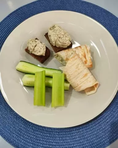 Готовую намазку можно подавать несколькими способами: завернув в лаваш, намазав на бородинский хлеб или как дип к нарезанным свежим овощам. Это не только вкусно, но и питательно!