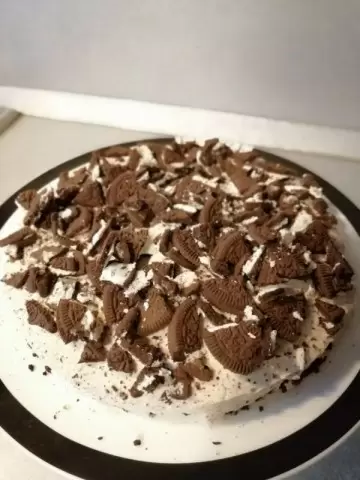 Начать с основы: отделить крем от 16 печений Oreo и либо измельчить печенье в крошку, либо поломать его. Затем смешать крошку с растопленным сливочным маслом. Полученную массу выложите в форму и поставьте в холодильник на 30 минут для застывания.Приготовить крем: взбейте сливки с загустителем до устойчивых пиков. Затем добавьте сгущенное молоко, заранее подготовленный крем от печений, ванильный экстракт и мелко нарезанный шоколад. Тщательно перемешайте все ингредиенты.Собрать торт: выложите крем на остывшую основу и равномерно распределите. Останется только поломать оставшиеся 8 печений и посыпать ими верх торта. Уберите десерт в холодильник на 2.5 часа для завершения процесса приготовления.