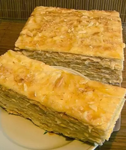 Крем для Наполеона традиционно готовится заварным. Яйца соединяются с сахаром и мукой, затем добавляется подогретое молоко. Как только смесь загустеет, добавьте ваниль и коньяк, и дайте крему остыть под пленкой. Коржи готовятся из раскатанного теста, которое нужно выпекать в разогретой до 180°C духовке. Они должны подниматься с пузырьками — это и есть фирменная особенность Наполеона.