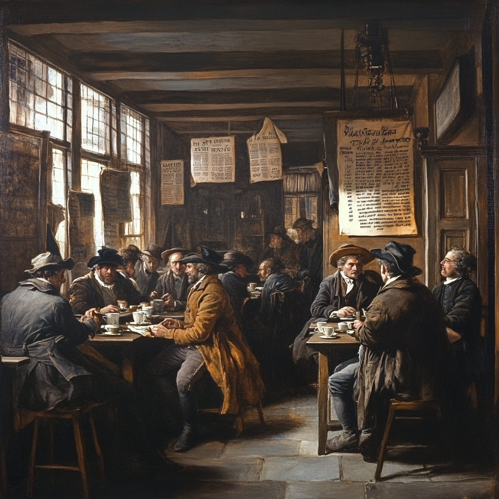 Кофейни, начиная с 1650-х годов, начали набирать популярность сначала в Оксфорде, а затем и в Лондоне. Здесь можно было за небольшую плату насладиться чашечкой кофе и почитать свежие газеты или листовки. Кофейни охотно обсуждали все: от политики до торговли и сплетен, что сделало их неформальными центрами общения. Их даже называли «университетами для бедняков», так как они позволяли людям обмениваться мнениями, вне зависимости от социального статуса.