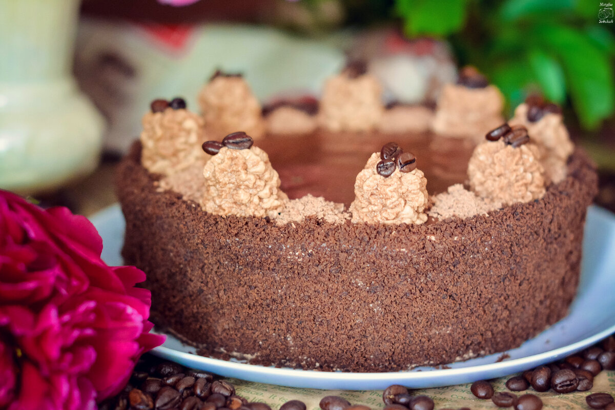 Для любителей кофе и шоколада приготовлен настоящий кулинарный шедевр. Этот торт сочетает в себе нежные шоколадные коржи, восхитительный кофейный крем и сладкую чернику, создавая незабываемую симфонию вкусов. На ваш взгляд, так выглядит идеальное шоколадное лакомство!