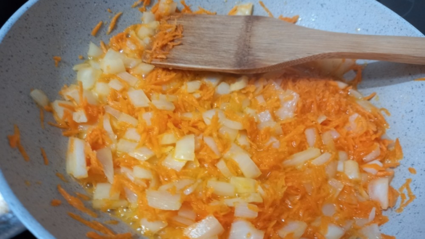 Когда лук достигает прозрачности и приобретает легкий золотистый оттенок, настает время добавлять морковь, предварительно убавив огонь. Важно тщательно перемешивать овощи, чтобы избежать пригорания, продолжая жарить до достижения желаемой мягкости с небольшой румяной корочкой. Такой подход создает ароматную зажарку, идеально подходящую для супов, рагу и соусов.