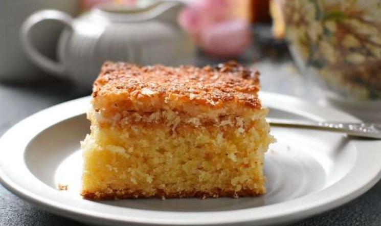 Когда корж слегка зарумянится, увеличьте температуру духовки до 200 градусов и распределите кокосовую массу сверху. Разровняйте поверхность и выпекайте еще 7-10 минут до золотистой корочки, внимательно следя за процессом.